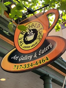 The Ragged Edge. This is a blast from the past. I’m taking a bit of a detour from my stated objective of checking out coffeehouses to the north, especially to the west of 11/15. Actually, it’s technically not too much of a detour since the town of Gettysburg is indeed to the west of 11/15. I was in this most famous of towns not to explore its deep/painful/beautiful history, but to attend a yearly bluegrass concert. On the way home, I thought I’d be remiss if I didn’t take in the town itself while I was here. It was then that I recalled The Ragged Edge.