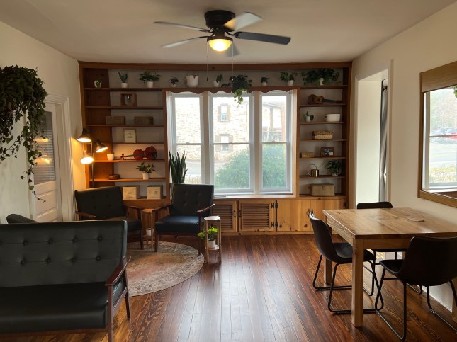the ample bookshelves…